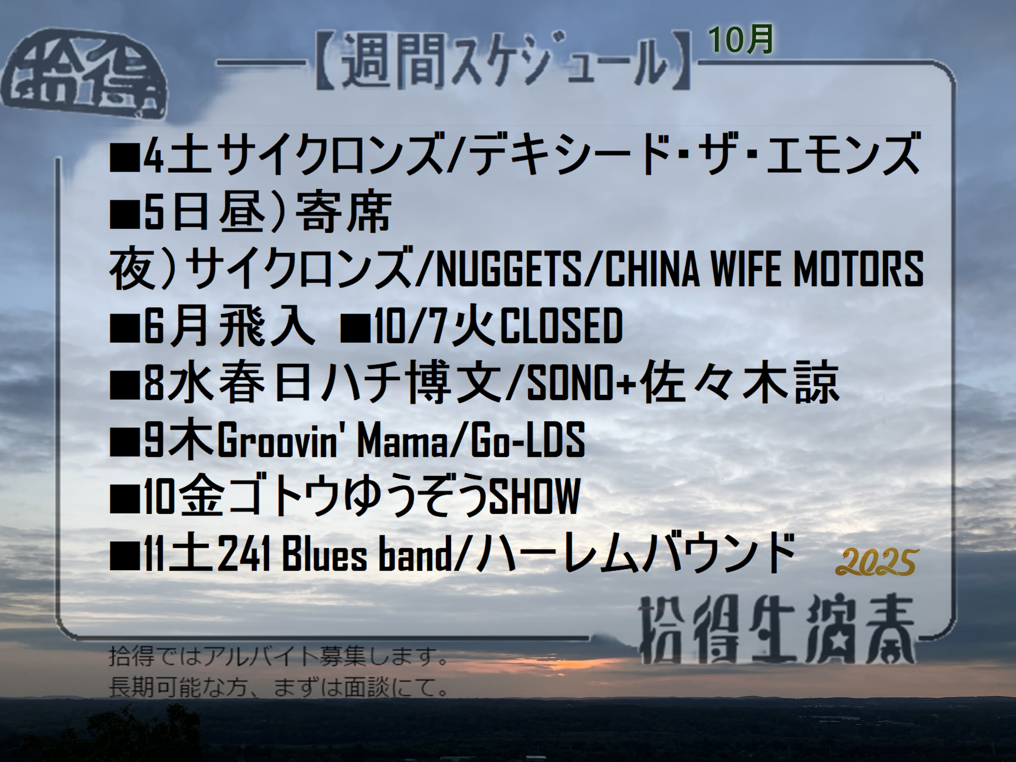 ■10/27月 アコースティック飛入 Live day 18:30 free ■10/28火 _CLOSED